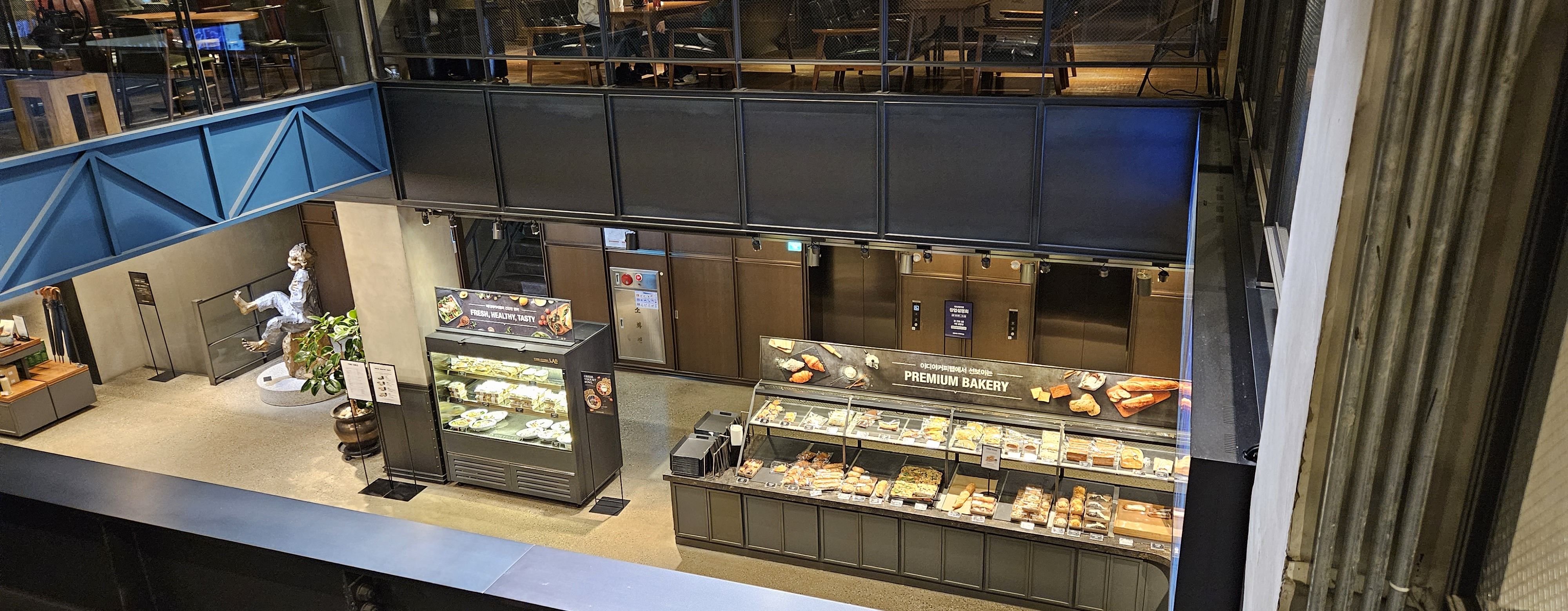 2층에 자리를 잡을 생각이어서 음료가 나올 때까지 1층 커피바 근처에서 이디야커피랩을 좀 더 둘러봤다.