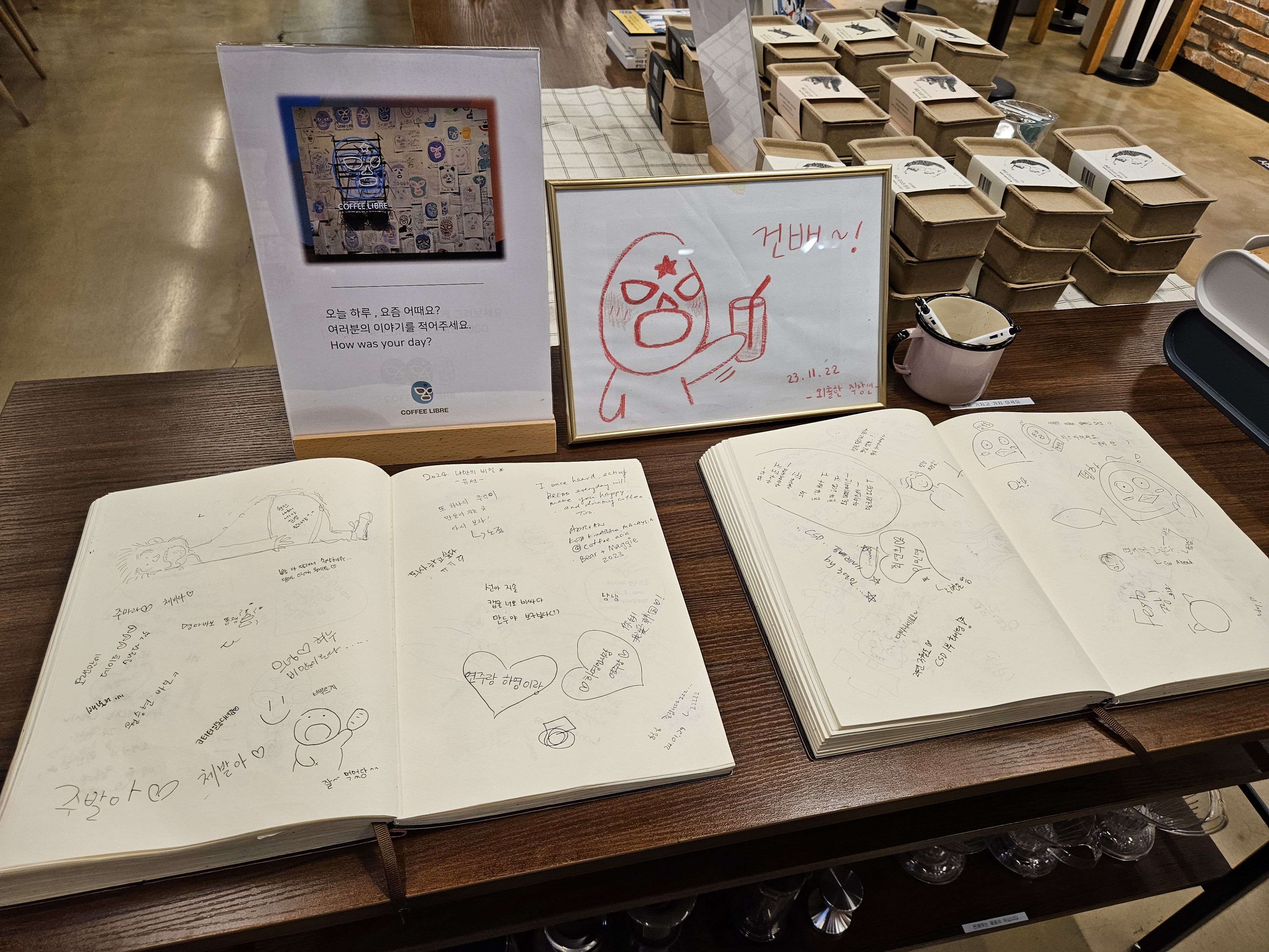 커피바 근처에는 방명록도 있었다.