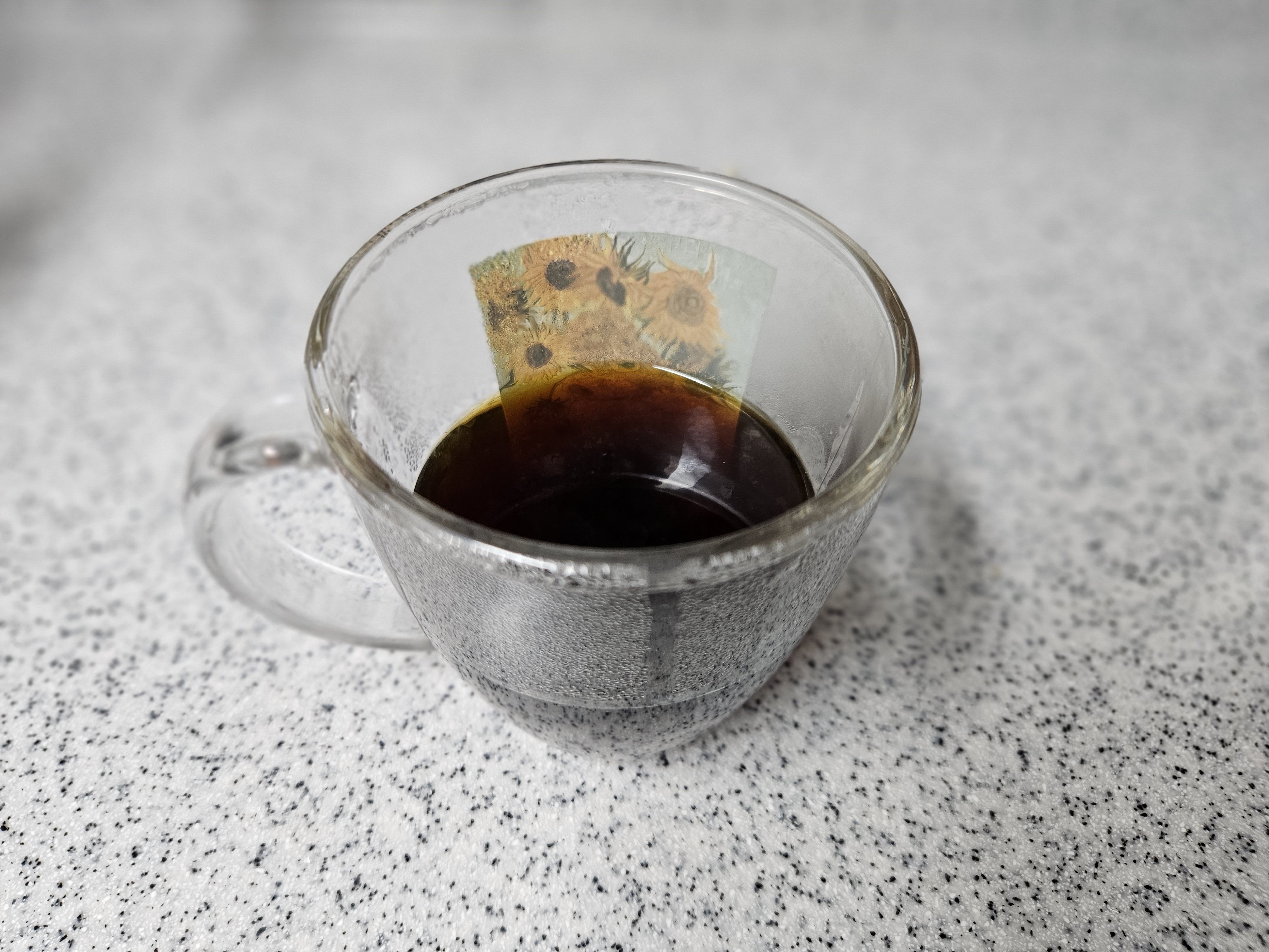 드립백 윗면을 잘라서 오픈해주고 머그잔에 걸쳐 두었다.