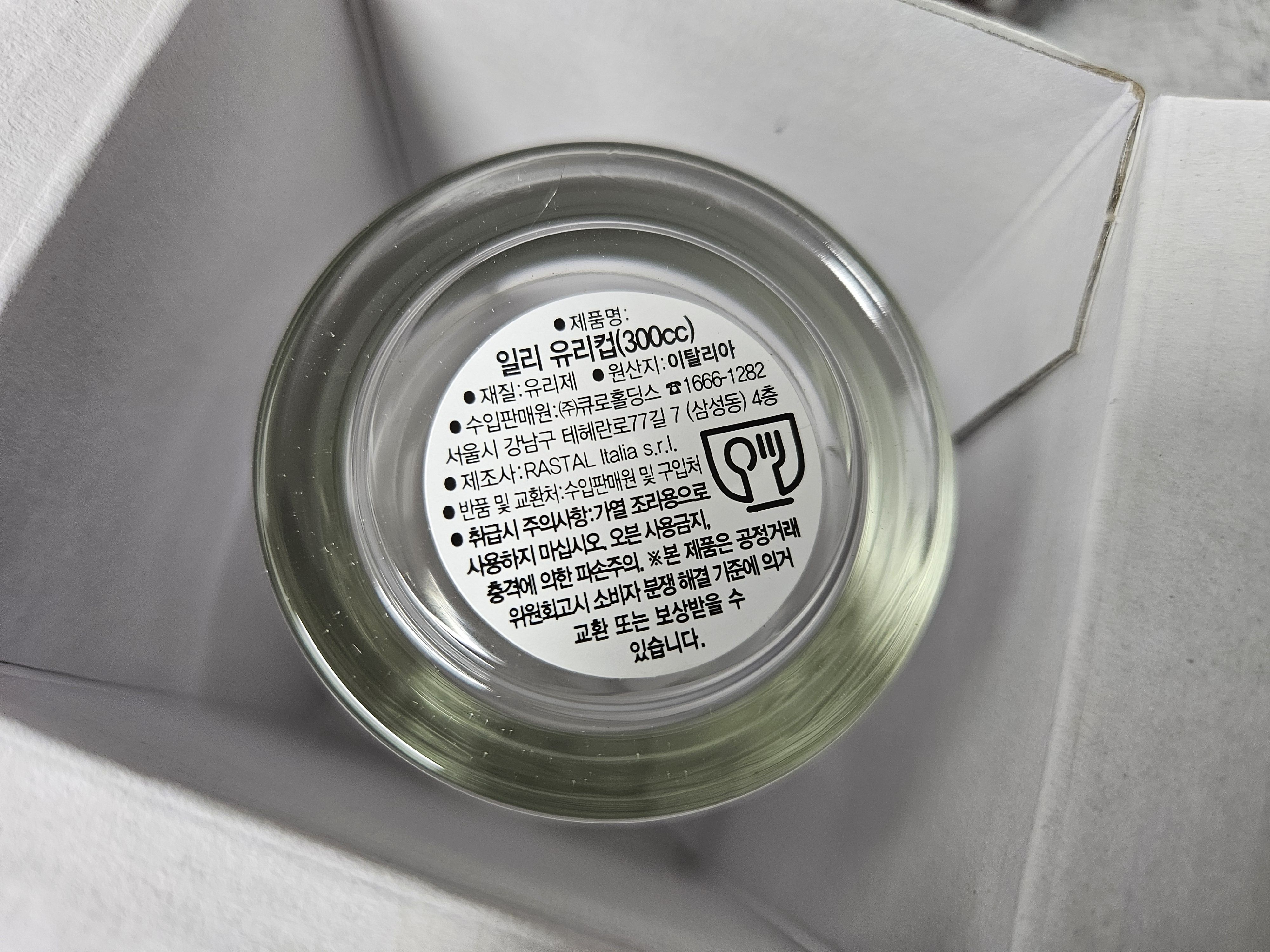 일리 라테 글라스 박스를 열고 바닥을 보니 이번에도 제공되는 잔도 이탈리아에서 만든 제품이다.