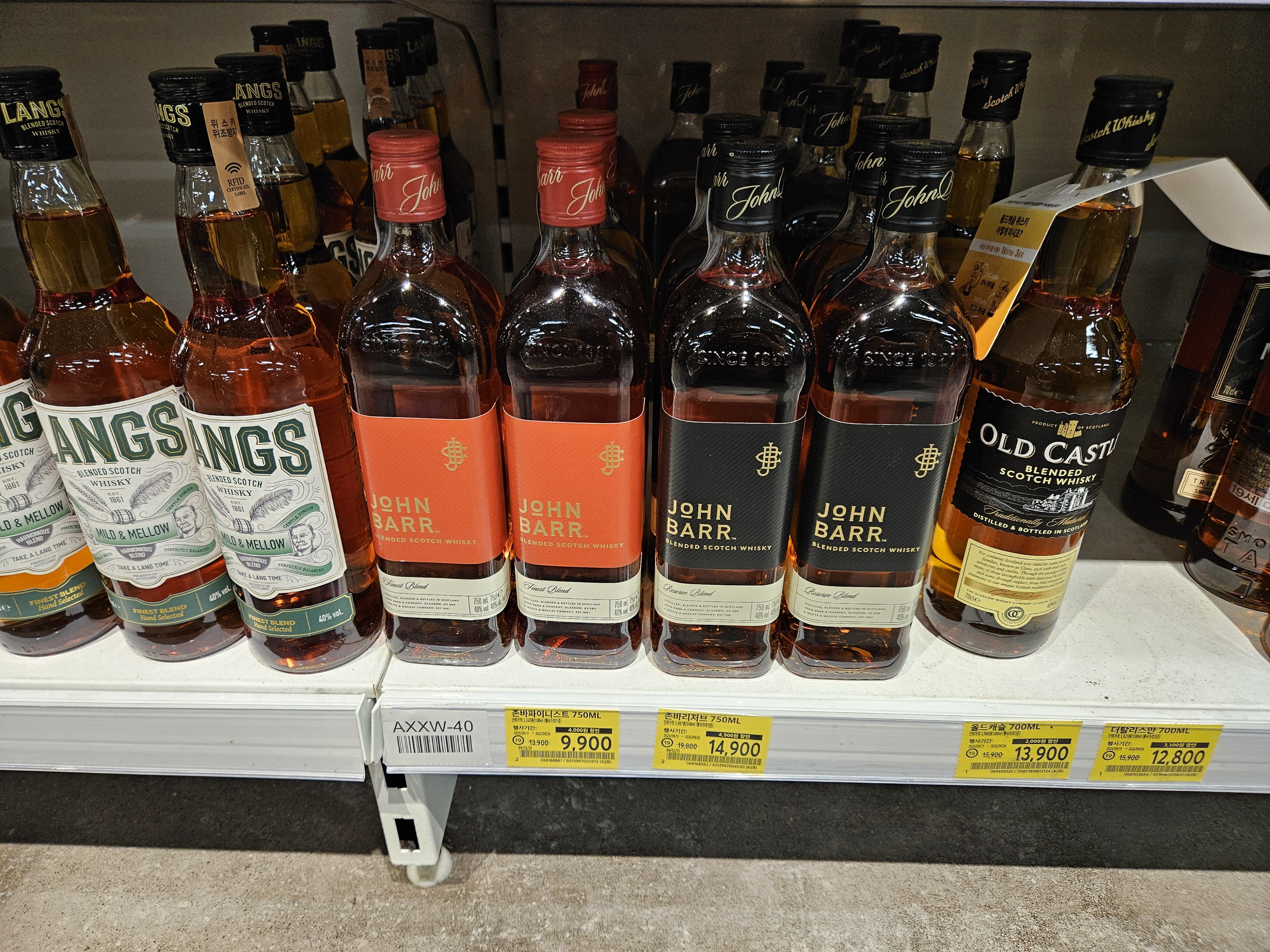 사각의 위스키 병은 거의 조니워커의 아이덴티티 같은 느낌이었는데 훨씬 저가의 존 바 위스키가 붉은색 레이블은 존 바 파이니스트, 블랙 라벨은 존 바 리저브로 판매하고 있는데 사람들은 조니워커의 레드라벨과 블랙라벨을 따라 했다는 말이 많다. ^^;