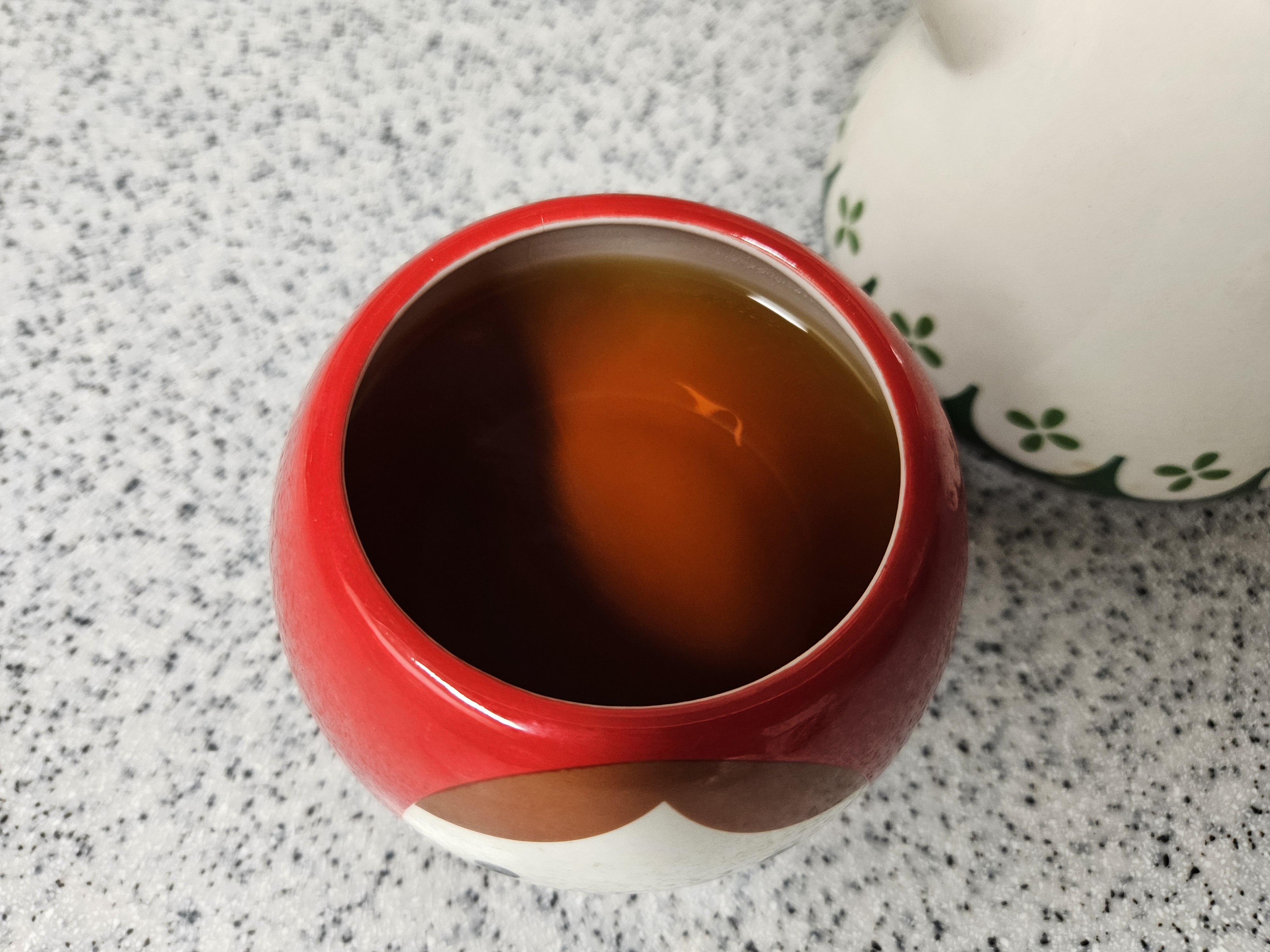 추출하고 난 뒤의 붉은 색의 차가 눈에 띈다.