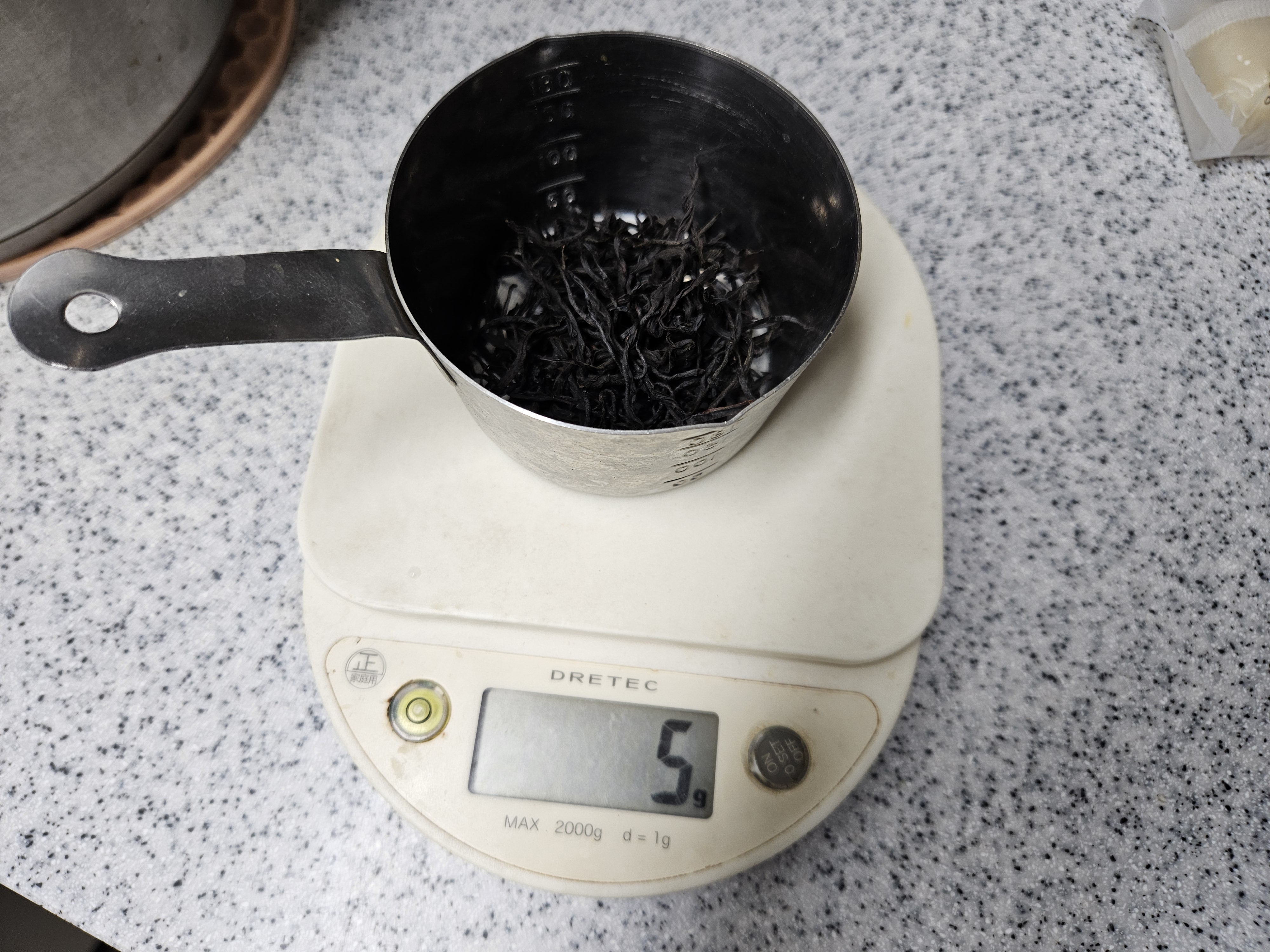 설명서 대로 5g의 차 잎으로 500ml를 우린다고 다고 해서 저울로 5g을 담았다.